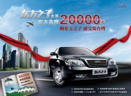 09年期間,伴隨奇瑞東方之子六年首度官降2萬,奇瑞公司推出的“情系中華東方之子真情寶島游”活動,更是讓消費者耳目一新。東方之子以旅游促銷的方式,回饋廣大新老用戶,使消費者不僅暢享8萬B級車的實際禮遇,還有機(jī)會雙喜臨門獲得“真情臺灣游”的貼心大獎,這在行業(yè)營銷史上都史無前例。尤其是其活動地點別有深意的設(shè)置在中國寶島臺灣,更體現(xiàn)出奇瑞公司對于消費者的人文關(guān)懷——讓每一位“東方之子”,對于“民族情、祖國頌、華夏魂”進(jìn)行深度溝通和思索,從而增強(qiáng)民族向心力、凝聚力,更加熱愛祖國山河、熱愛自己民族的產(chǎn)品。