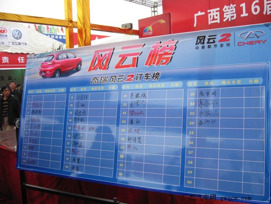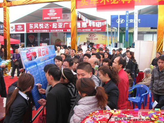 (廣西汽車網(wǎng) 訊)4月16日,全國四季常綠的“綠城”――廣西南寧第十六屆,車影與星光交錯(cuò), “鯨魚”在綠地上起舞。動(dòng)感都市家轎――風(fēng)云2兩廂在這里“鯨”艷登場。來自廣西各大新聞屆媒體記者、鑫廣達(dá)汽車城各個(gè)領(lǐng)導(dǎo)及意向客戶近百號(hào)人參加了風(fēng)云2兩廂邕城的上市發(fā)布會(huì)。在現(xiàn)場還舉行了半小時(shí)的瘋狂搶購活動(dòng),最終成交39臺(tái)。