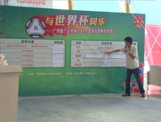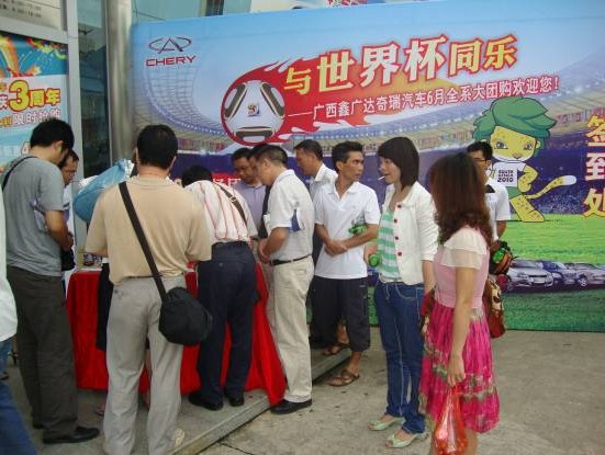 2010年6月27日在科園大道55號廣西鑫廣達(dá)奇瑞4S店舉行的“與世界杯同樂—--奇瑞汽車6月全系大團(tuán)購”活動圓滿結(jié)束了。本次團(tuán)購是鑫廣達(dá)奇瑞建店3周年優(yōu)惠幅度是歷史之最;活動當(dāng)天,娛樂互動,場面熱烈,很多顧客都買到了自己心儀的愛車。