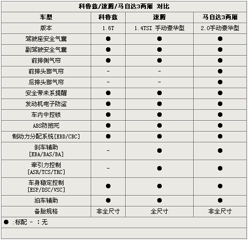 既要跑得快,又要夠安心,這都是一款成功的車型所必須具備的要素。安全部分新馬自達(dá)3兩廂版以非常明顯的優(yōu)勢勝出,前后排側(cè)向安全氣簾、剎車輔助系統(tǒng)以及牽引力控制系統(tǒng)等部分都是其優(yōu)勢所在。速騰輸在了安全氣囊,科魯茲盡管加入了ESC車身電子穩(wěn)定系統(tǒng),但卻不能完全彌補(bǔ)其他部分的不足。