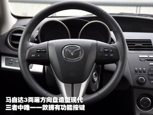 方向盤的設(shè)計(jì)能給駕駛者最直觀的運(yùn)動(dòng)感受,但配置還是會(huì)讓人覺得感覺更加值得。新馬自達(dá)3兩廂方向盤造型突出時(shí)代感,但常規(guī)的三輻設(shè)計(jì)心意寥寥,亮點(diǎn)在于大量加入的多功能按鍵,使用那個(gè)方面有安全?启斊澰谡_握姿的位置采用打孔設(shè)計(jì),大拇指凹陷的細(xì)節(jié)處理讓人感覺是在駕駛一款賽車。速騰的方向盤造型有些單調(diào),希望近期改款以后能跟高爾夫6一樣的那么令人激動(dòng)。