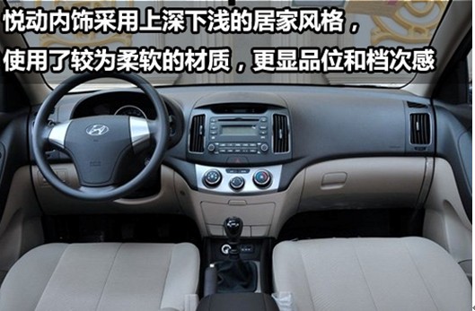 2011款悅動(dòng)的前臉造型,采用了大面積鍍鉻中網(wǎng),體現(xiàn)了現(xiàn)代當(dāng)下主推的流體雕塑式設(shè)計(jì)。其內(nèi)飾采用上深下淺的居家風(fēng)格,使用了較為柔軟的材質(zhì),更顯品位和檔次感,中控臺(tái)設(shè)計(jì)方方正正,布局清晰,操作便利。而AUX+USB接口的設(shè)計(jì),更是為你們的浪漫之夜注入了絲絲蜜意,讓你和她依偎在溫馨的車?yán),閉著眼睛,聽(tīng)著抒情的音樂(lè),也是一種不錯(cuò)的浪漫。