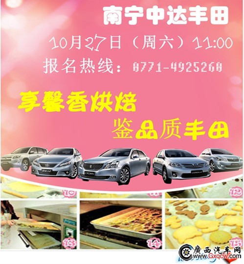答曰:10月27日(周六)到中達豐田參與“品位生活季”之DIY馨香烘焙日主題系列活動,除了專業(yè)導師專業(yè)設備現場教學,還可以親自動手烘焙美味糕點,與親友分享你獨一無二的味道!