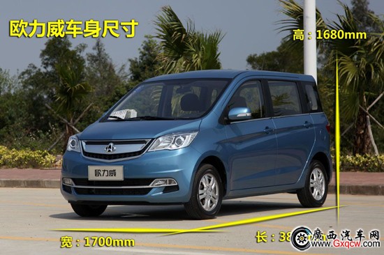 歐力威此次的定位為小型CDV車型,所謂CDV的意思就是基于轎車平臺的廂式車。正式因為這種設計,給了歐力威整車3800mm*1700mm*1680mm的長寬高尺寸,讓它看起來方方正正的非?蓯郏芟袷且粋大玩具。