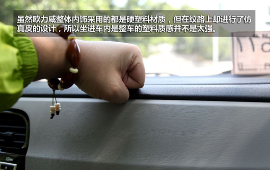 做工方面對于這樣一個價位的車,其實(shí)我們并沒有過多的要求,材料方面基本采用的基本都是硬塑料材質(zhì),但廠家在這方面還比較細(xì)心,對材質(zhì)的紋路進(jìn)行了一定的考究,使得整體塑料質(zhì)感比想象中要好很多。并且根據(jù)廠家的消息得知,后續(xù)歐力威還將提供各式各樣的面板可供客戶選擇。