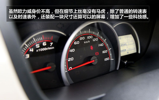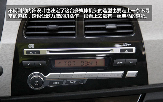 中部多媒體機(jī)頭的設(shè)計感很強(qiáng),乍一看還有一點(diǎn)寶馬的味道,如果只從細(xì)節(jié)來看的話,你絕對想象不出歐力威的外觀是這個樣子的。而從功能來看的話,雖然沒有什么高科技可言,但滿足日常的實(shí)用已經(jīng)足夠了。