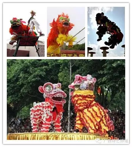 由廣西田陽壯族舞獅藝術(shù)團表演高難度舞獅:瑞獅爭艷、樓臺跳樁、五行臺、獅子過天橋、刀尖獅技、金獅雄風等等。