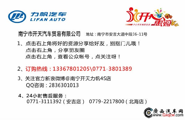 力帆汽車南寧市開天4S店H8(主舞臺前)誠邀您的光臨!