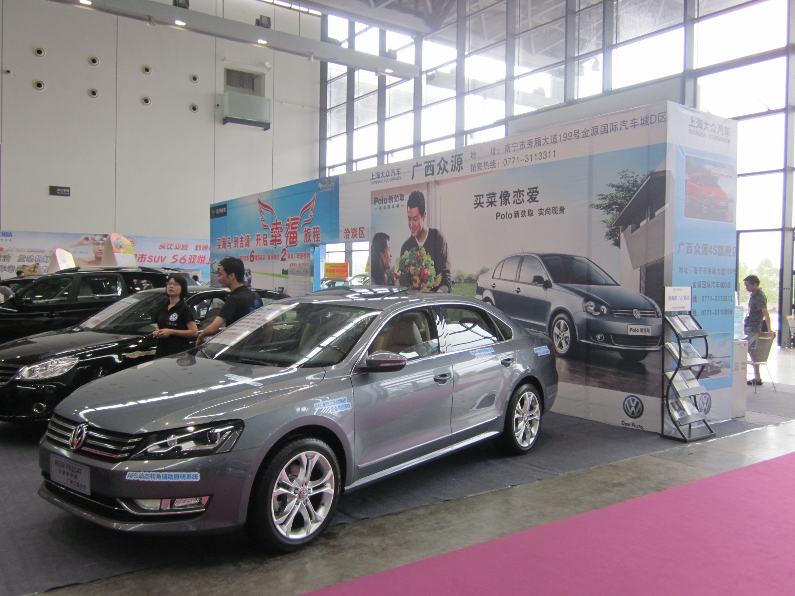 2011中國國際商務(wù)文化節(jié)暨第二屆中國(南寧)國際時(shí)尚博覽會(huì)于17-20日拉開帷幕,本次展覽將使用南寧國際會(huì)展中心15個(gè)展館,分設(shè)四大展區(qū),展覽面積4萬多平方米。盛會(huì)吸引500多個(gè)知名品牌參展,展品范圍涉及名表、珠寶、名車、名酒、名茶、時(shí)尚運(yùn)動(dòng)、品牌服飾、時(shí)尚內(nèi)衣、美容美發(fā)、休閑生活、時(shí)尚旅游等。而廣西眾源攜上海大眾全新車型最強(qiáng)陣容亮相會(huì)展中心二樓11號(hào)名車展館,參展的車型也是上海大眾的明星車型、暢銷車型。如:全新POLO、POLO新勁取、全新帕薩特以及朗逸等眾多車型。