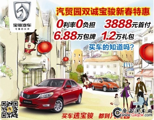汽貿(mào)園雙誠寶駿樂福季重重驚喜伴您幸福過有車生活,3888元超低首付購1.2L高性能寶駿樂馳;6.88萬寶駿630包牌超值驚喜;1.2萬至尊禮包重重出擊;0首付、0負擔幸福置換……心動就馬上行動吧,2014一馬當先開寶駿汽車回家過新年啦!