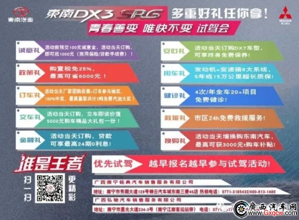 想親自試駕體驗(yàn)東南DX3 SRG的高實(shí)力嗎?想享受當(dāng)日限時(shí)廠家冰點(diǎn)購(gòu)車(chē)價(jià)嗎?想獲得2噸免費(fèi)汽油嗎?試”不宜遲,趕緊報(bào)名吧,與您不見(jiàn)不散!