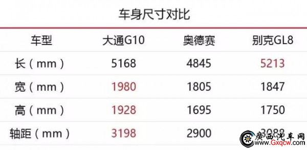 度方面則是bie克GL8占優(yōu),但軸距與上汽大通G10相比處于下風,想必內部空間也會略短一些;3.奧德sai和其他兩位相比顯然成了小個子。