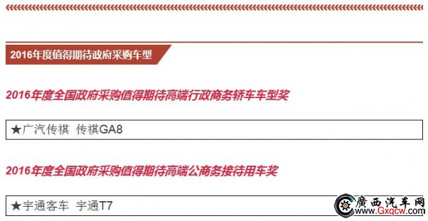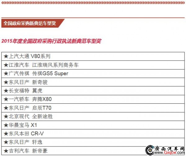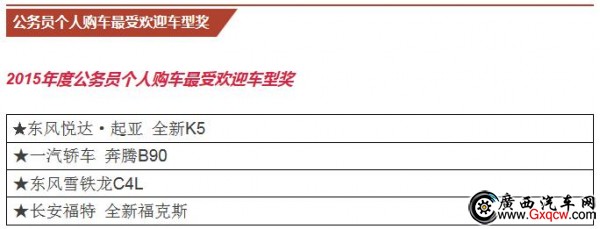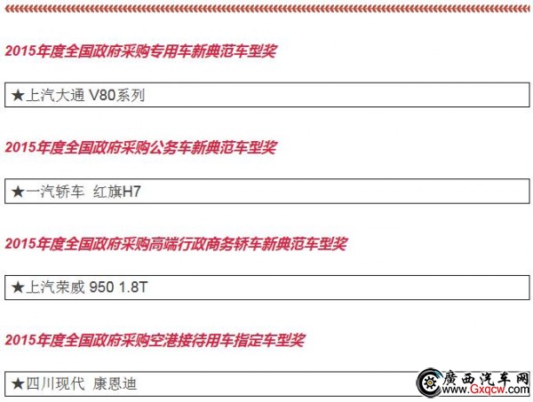 公商務(wù)用車(chē)不同于個(gè)人用車(chē),所以對(duì)車(chē)型的評(píng)選也有差異,重點(diǎn)考慮公商務(wù)用車(chē)的需求和市場(chǎng)表現(xiàn)。通過(guò)“政府采購(gòu)信息網(wǎng)”和“政府采購(gòu)信息”官微的 投票以及15位全國(guó)政府采購(gòu)汽車(chē)專(zhuān)家的現(xiàn)場(chǎng)評(píng)審,在眾多參選車(chē)型中最終選出大家心目中的政府采購(gòu)車(chē)型。本屆年會(huì)隆重揭曉了“2015年度全國(guó)政府采購(gòu)汽車(chē) 類(lèi)獎(jiǎng)項(xiàng)”和“2016年度的期待車(chē)型”。